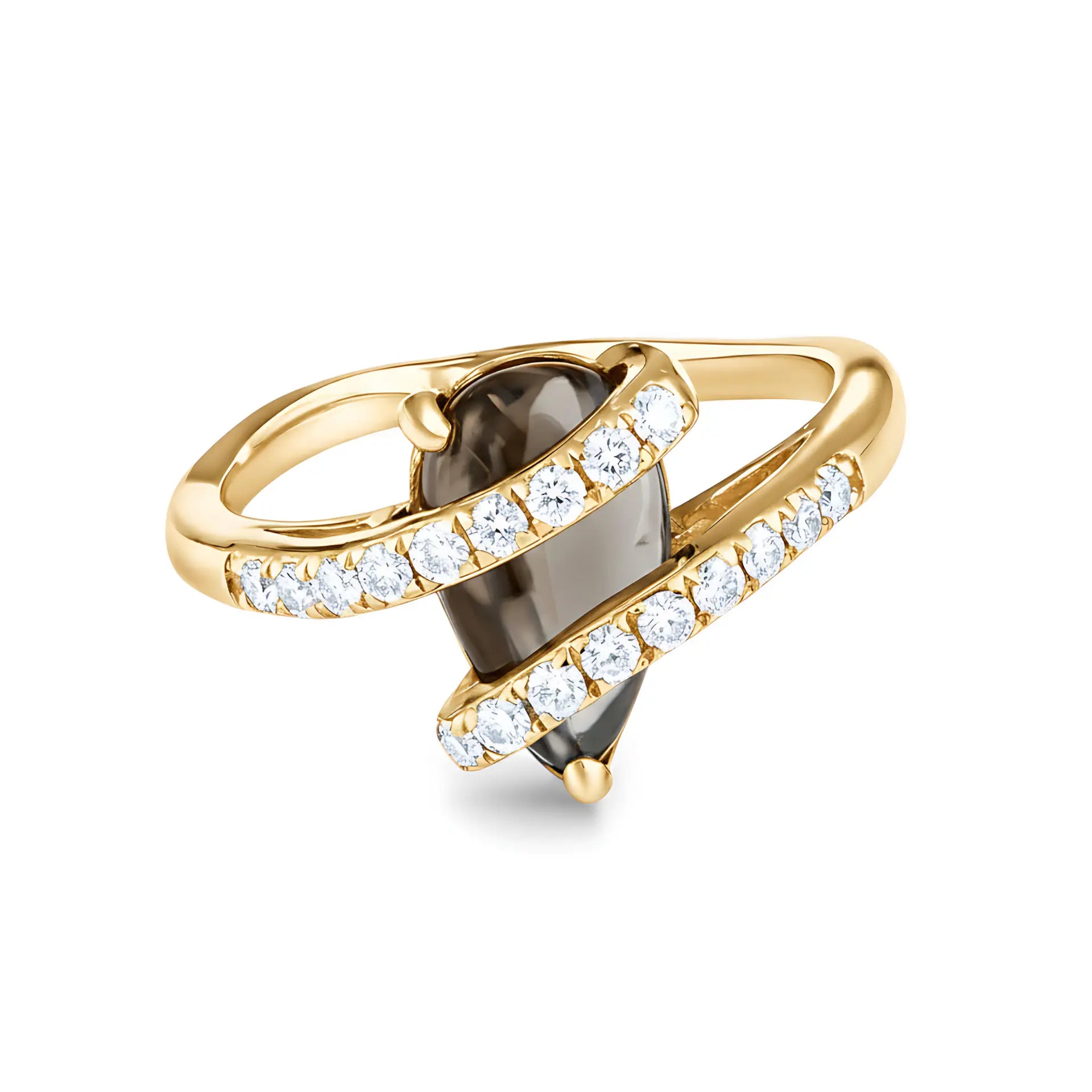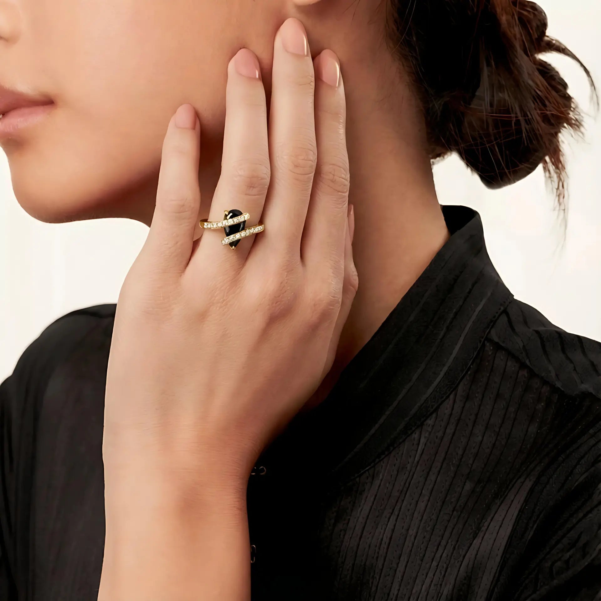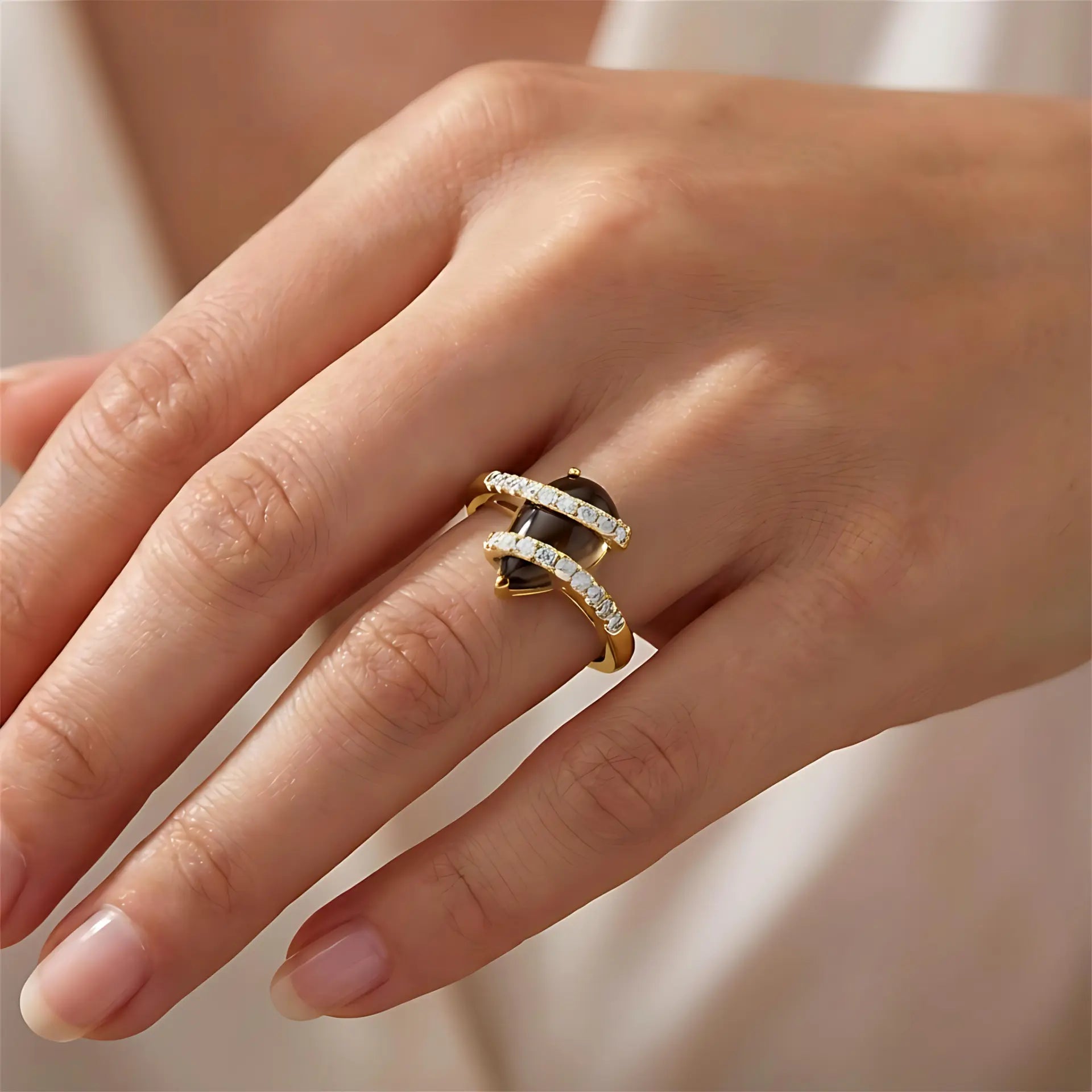 Our Smoky Quartz Pear Wrap Ring feels like a quiet piece of earth, gently settling your heart. The deep brown center stone is steady and clear, held lightly by two zircon-lined bands that wrap around it. Smoky quartz carries a grounding energy and guides you back to the present moment. So your thoughts stay close instead of drifting away. Wear it and let your rhythm steady as you gently return to your center.