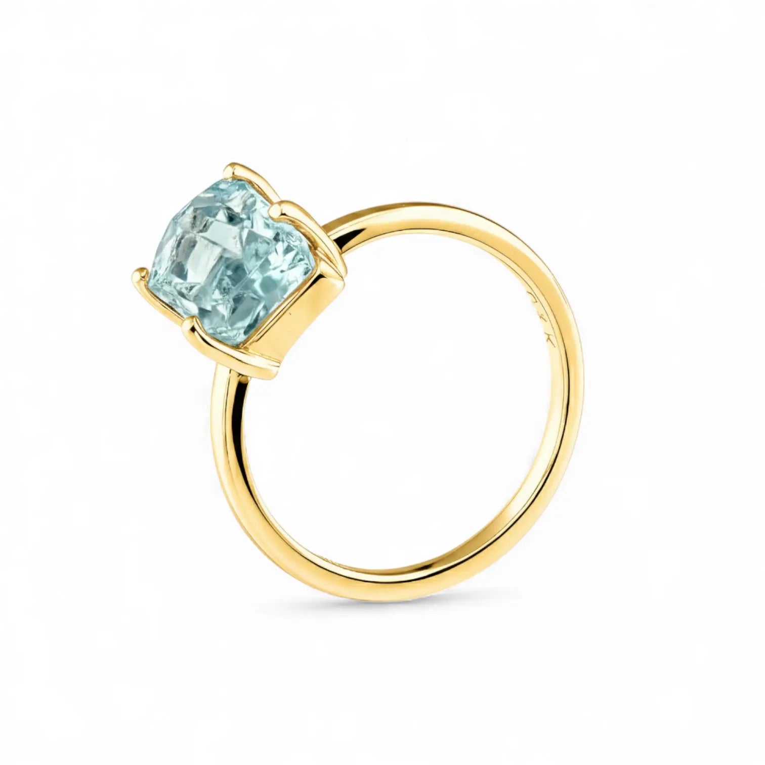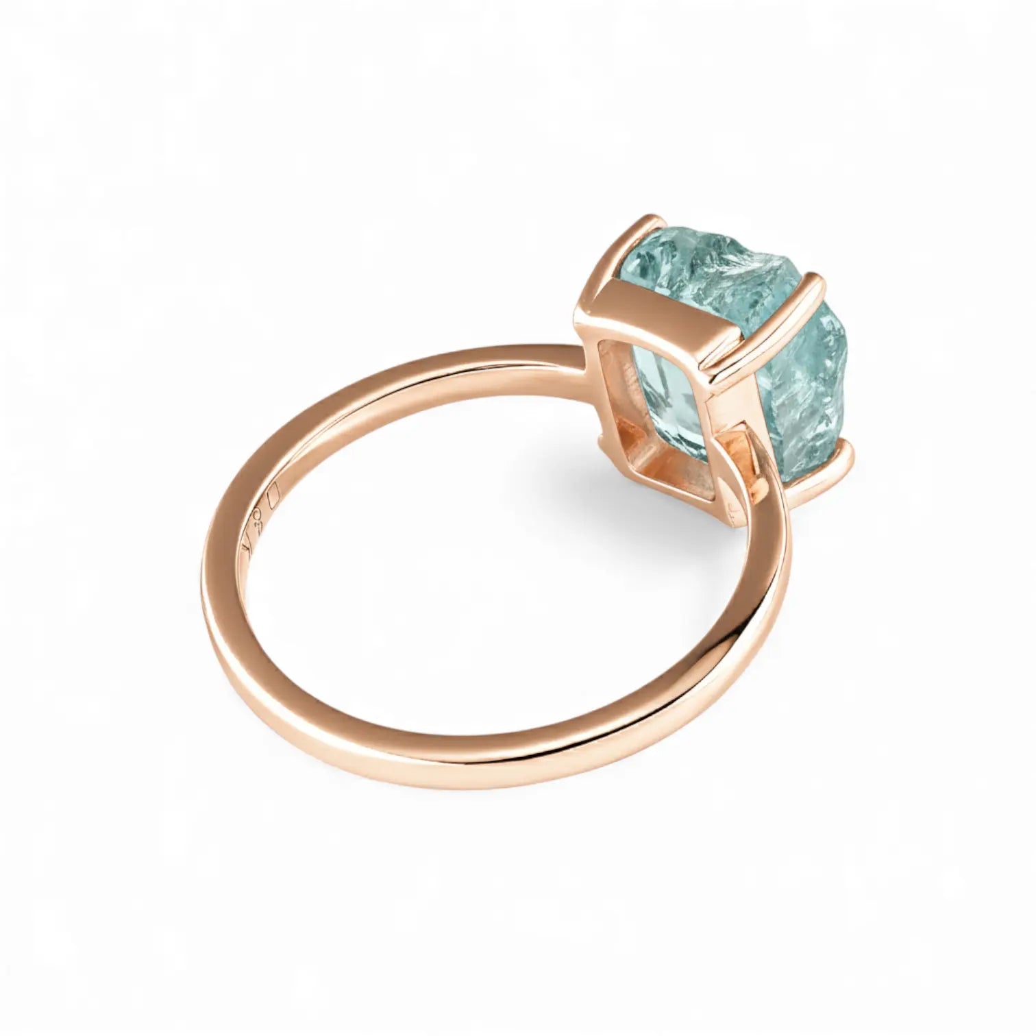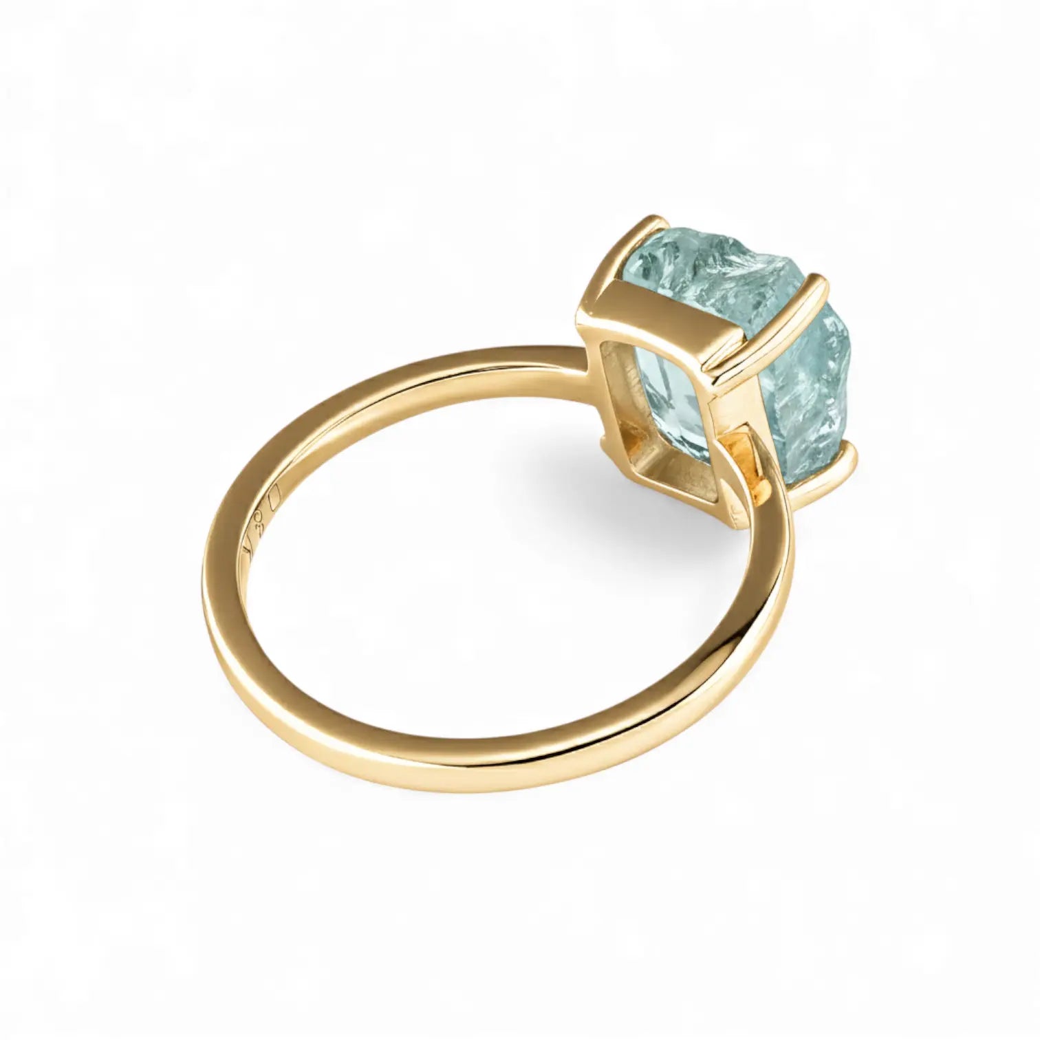 Our Aquamarine Ring uses an unpolished gemstone, its transparency concealing a touch of composure. It carries the freshness of March, giving you boundless courage. It allows you to find your footing again in moments of hesitation.