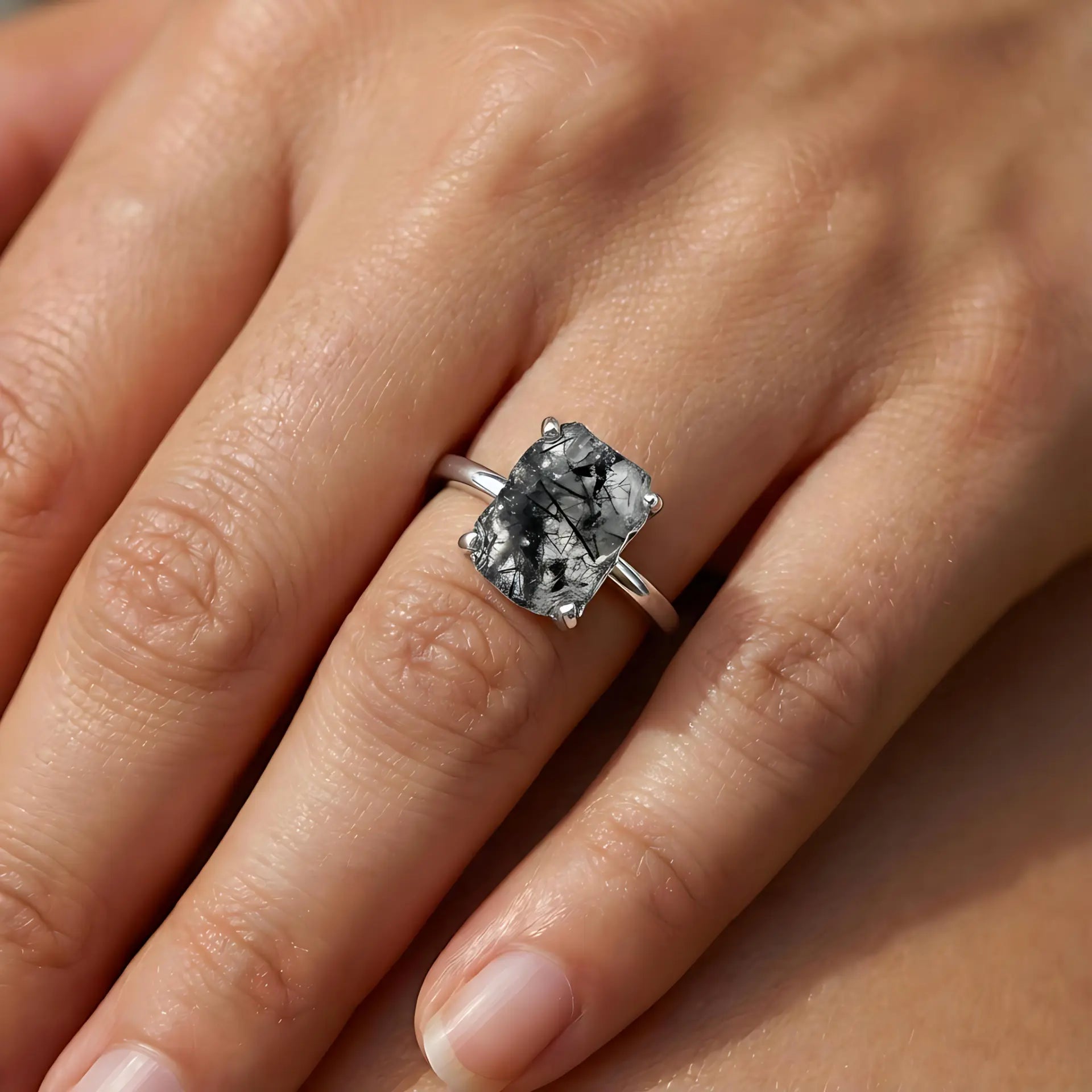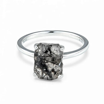 Raw Black Rutilated Quartz Ring - Freeform