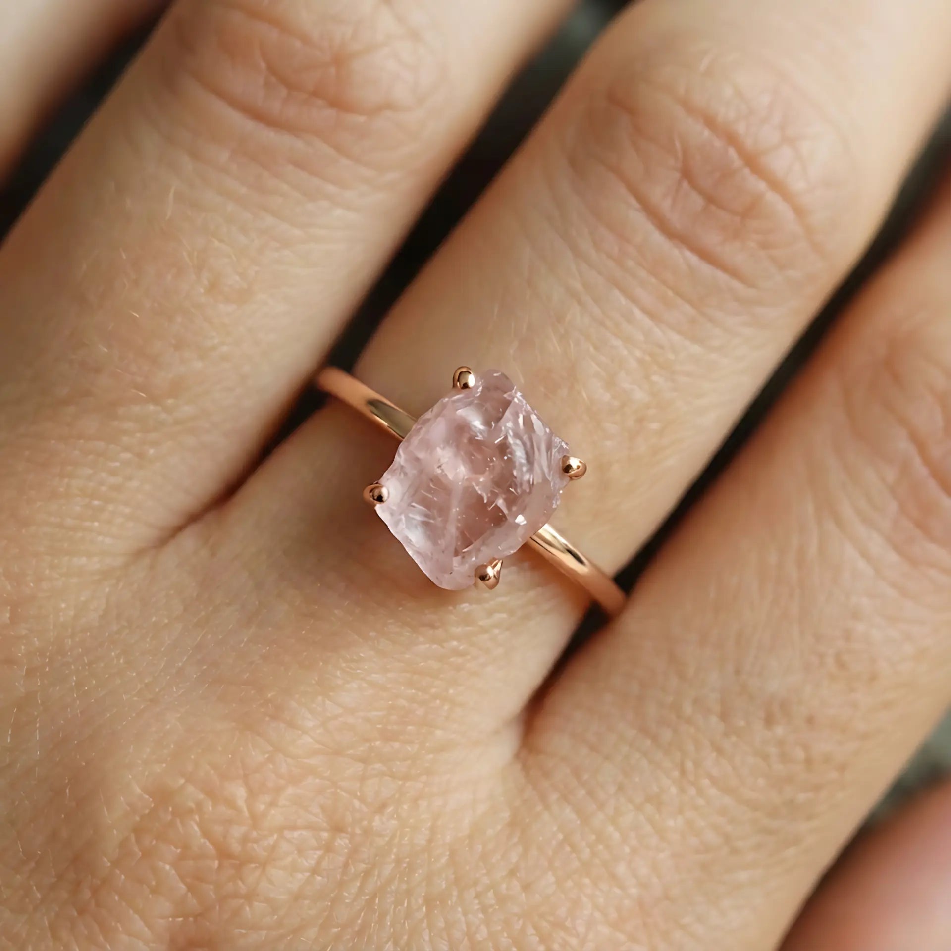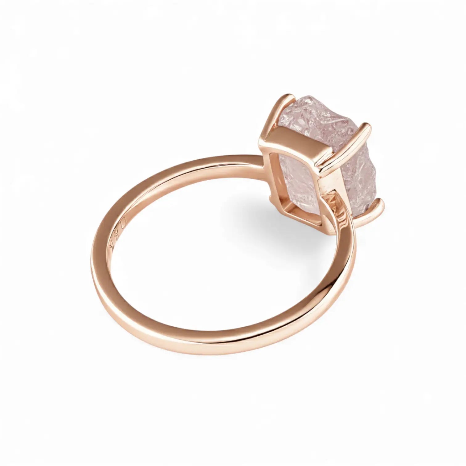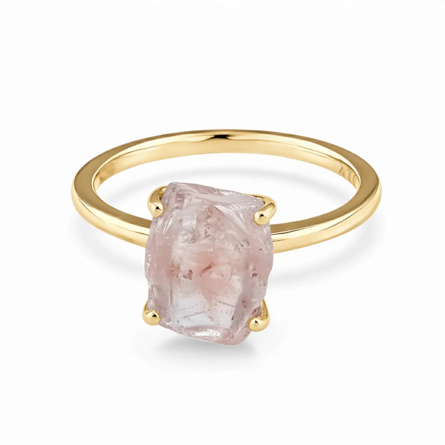 Fingertip feels covered in a soft pink glow, which is the quiet presence of our Raw Morganite Ring. It keeps the natural misty pink of the raw stone and carries a gentle sense of honesty. This quiet kindness and compassion can stay with you and continue to shine through your daily life. When you need a touch of comfort from deep within, it stays by your side in the way you need.