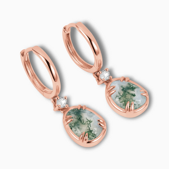 Carry a private forest by your ear. Smooth moss agate reveals the textures of growing plants, while the playful clasp lets light dance with every tilt. These moss agate earrings holds a gentle promise of growth, offering a quiet space amid the noise. It inspires calm, vitality, and the quiet strength to flourish.