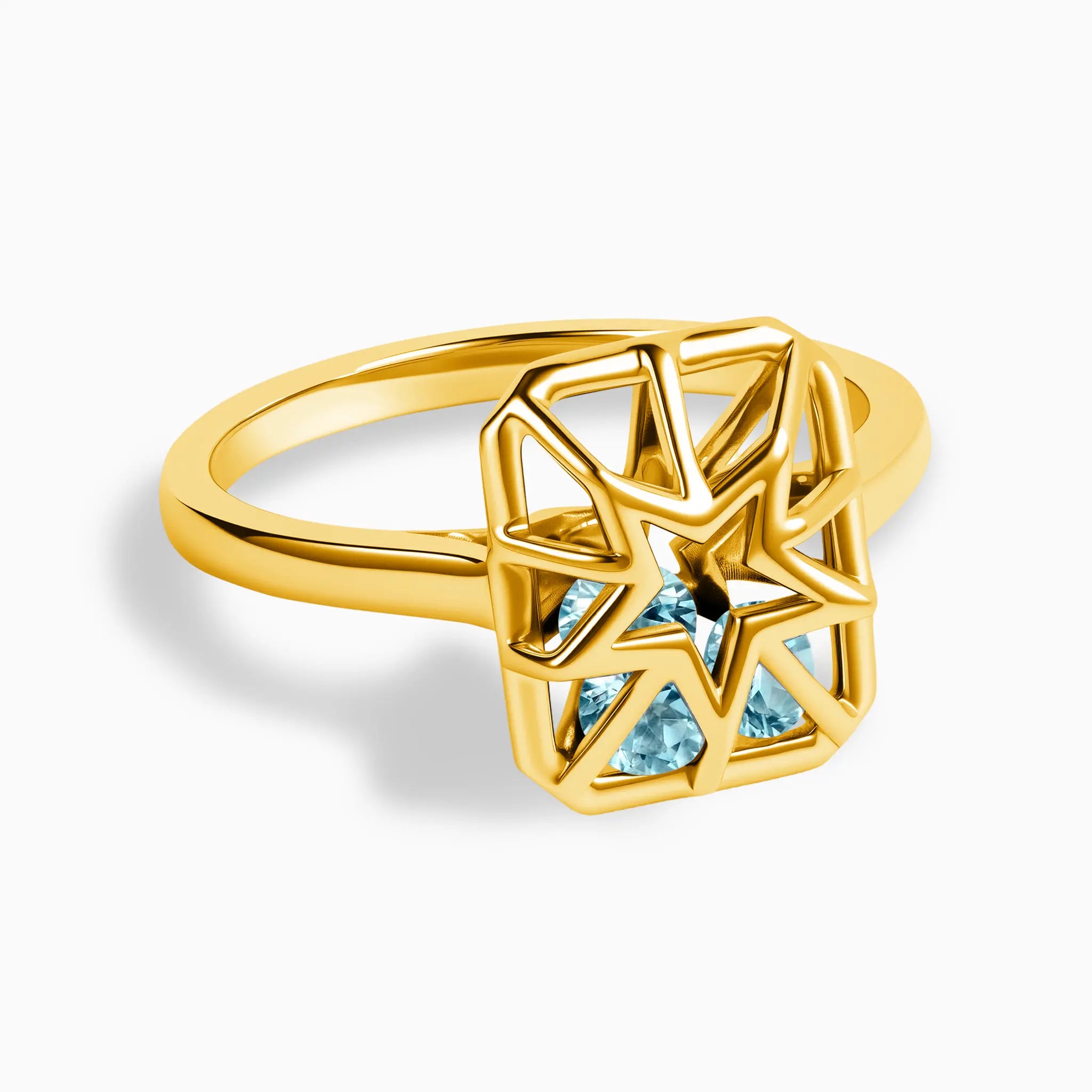 Rectangle Aquamarine Star Cutout Shaker Ring - Stellar Core