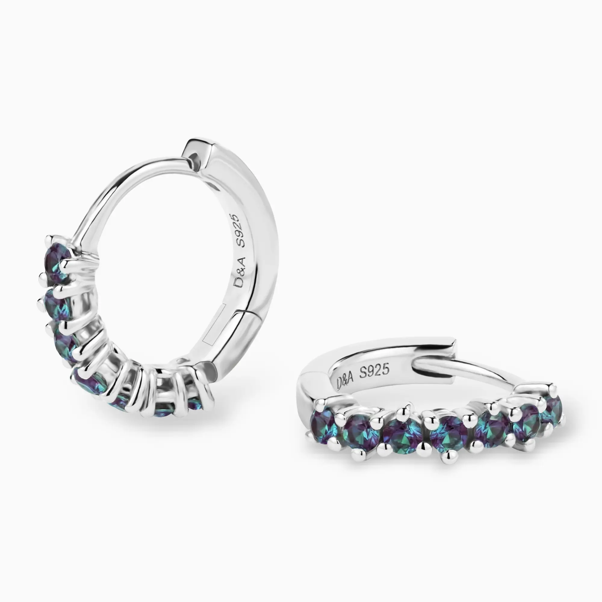 Round Alexandrite Huggie Hoop Earrings - Hushed