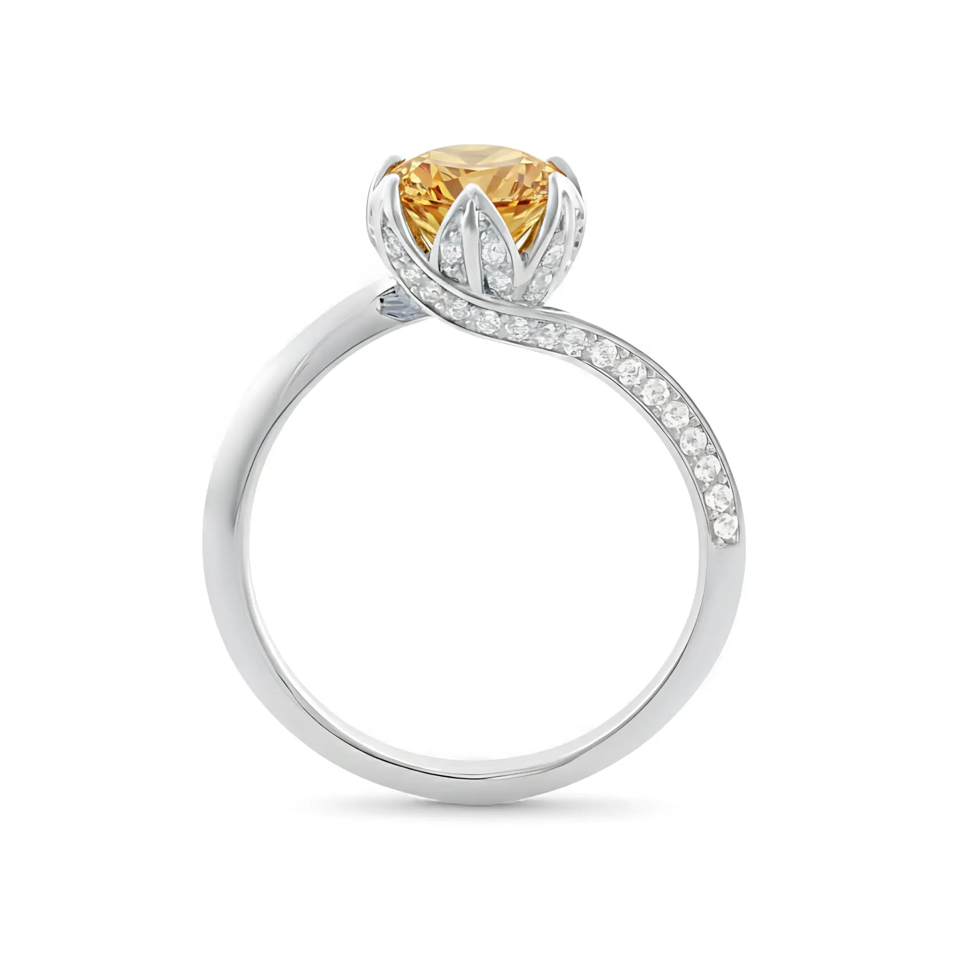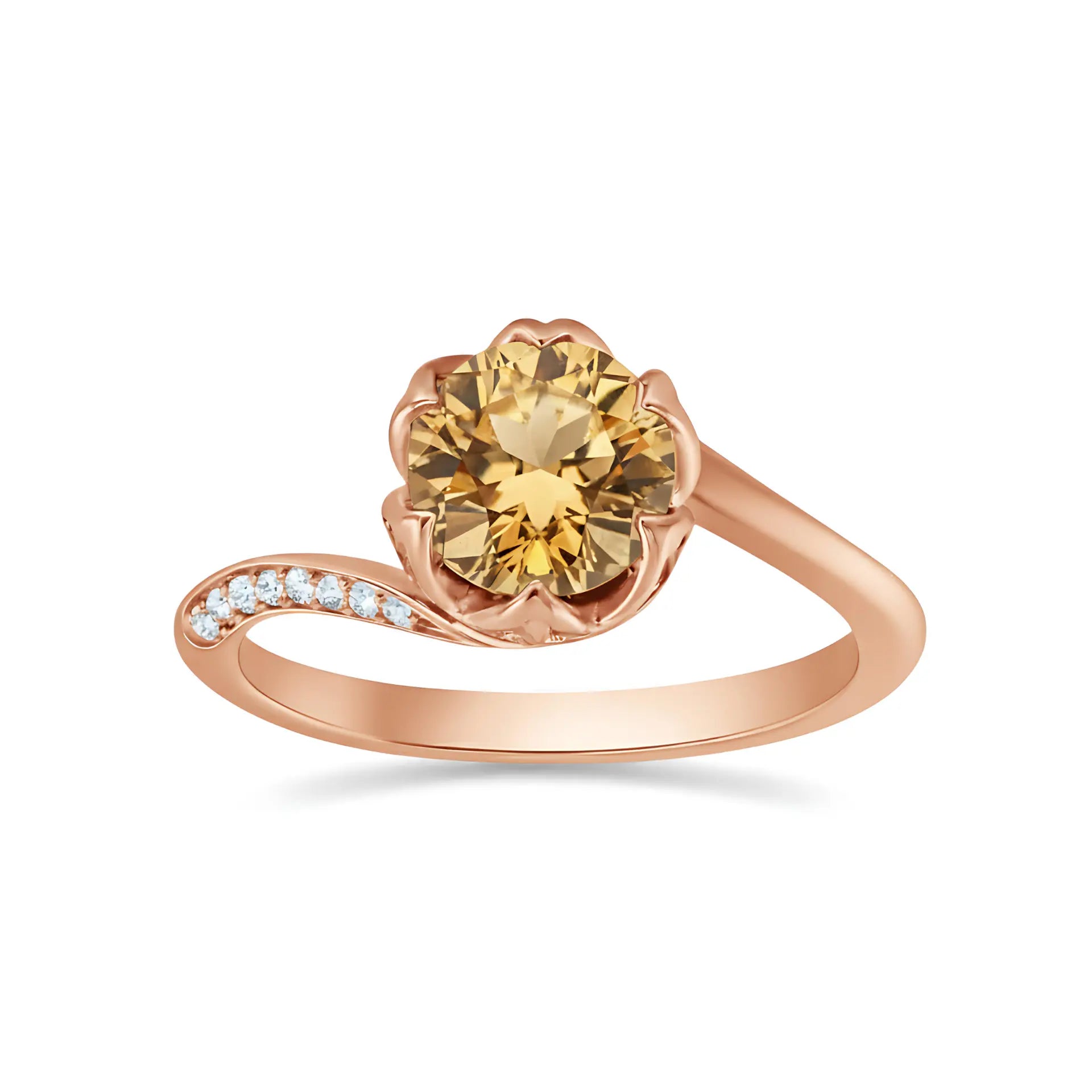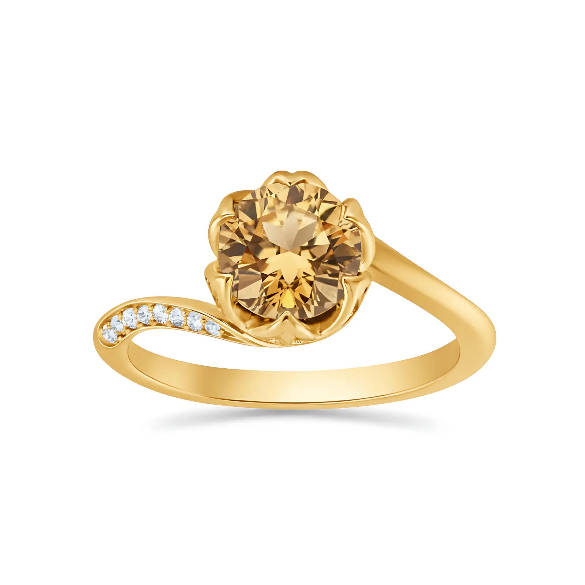 Round Citrine Petal Prong Ring - Bloom
