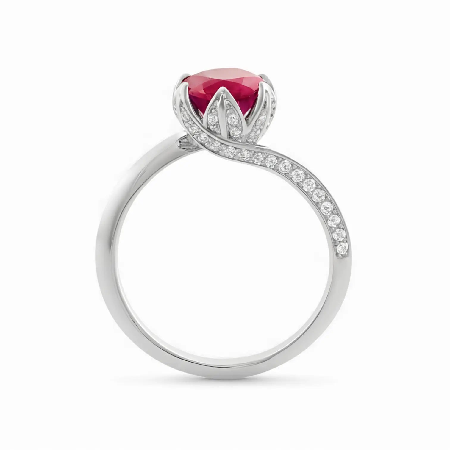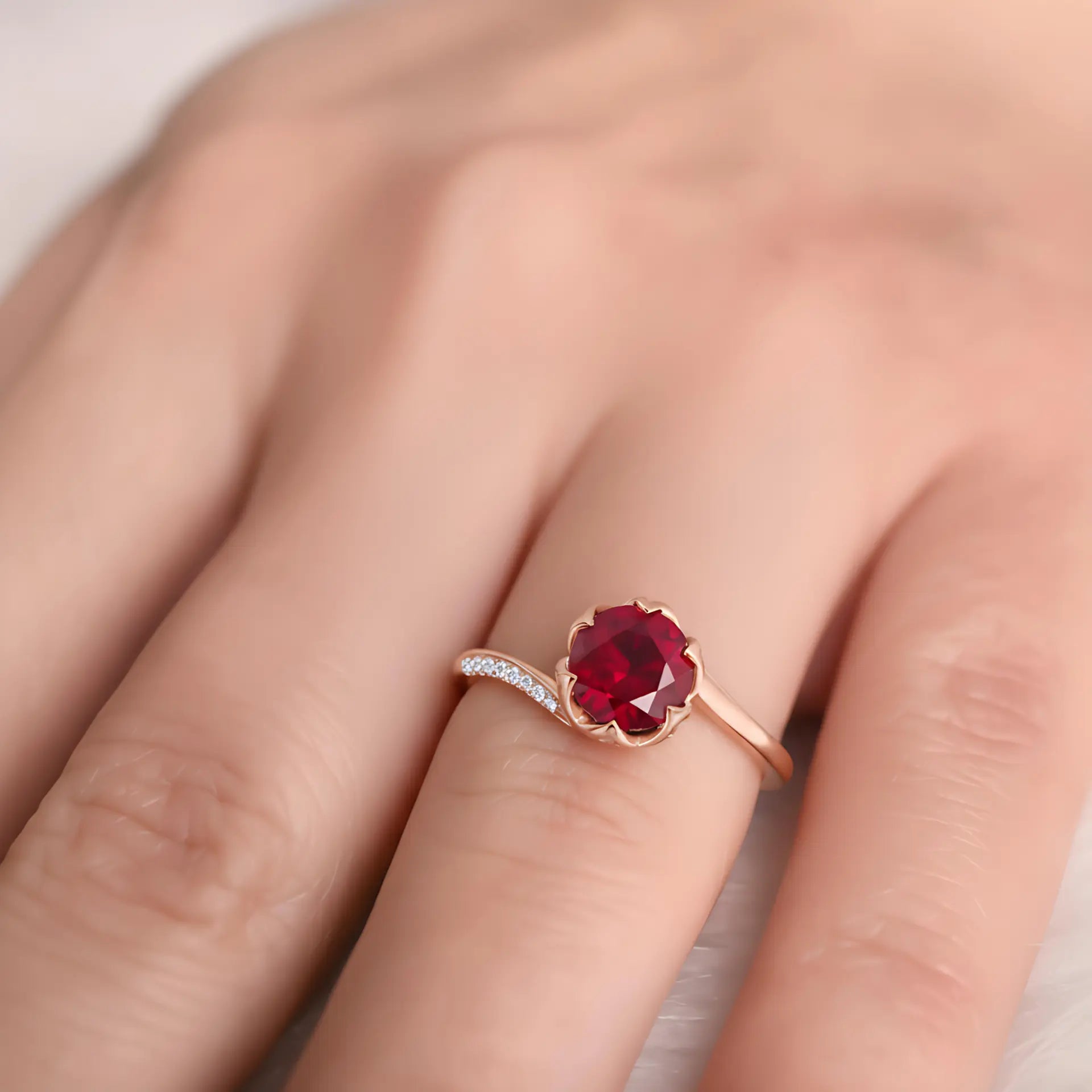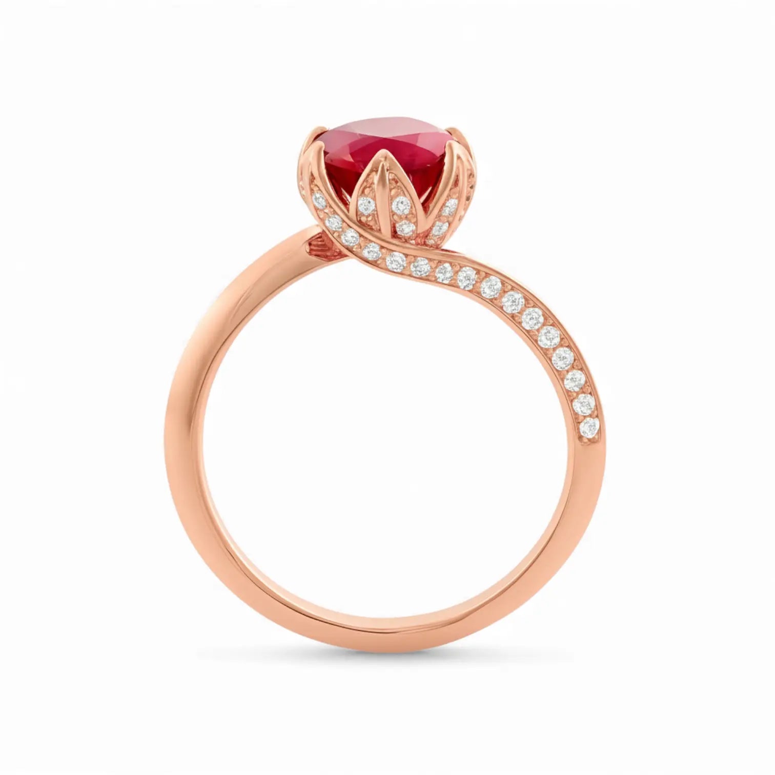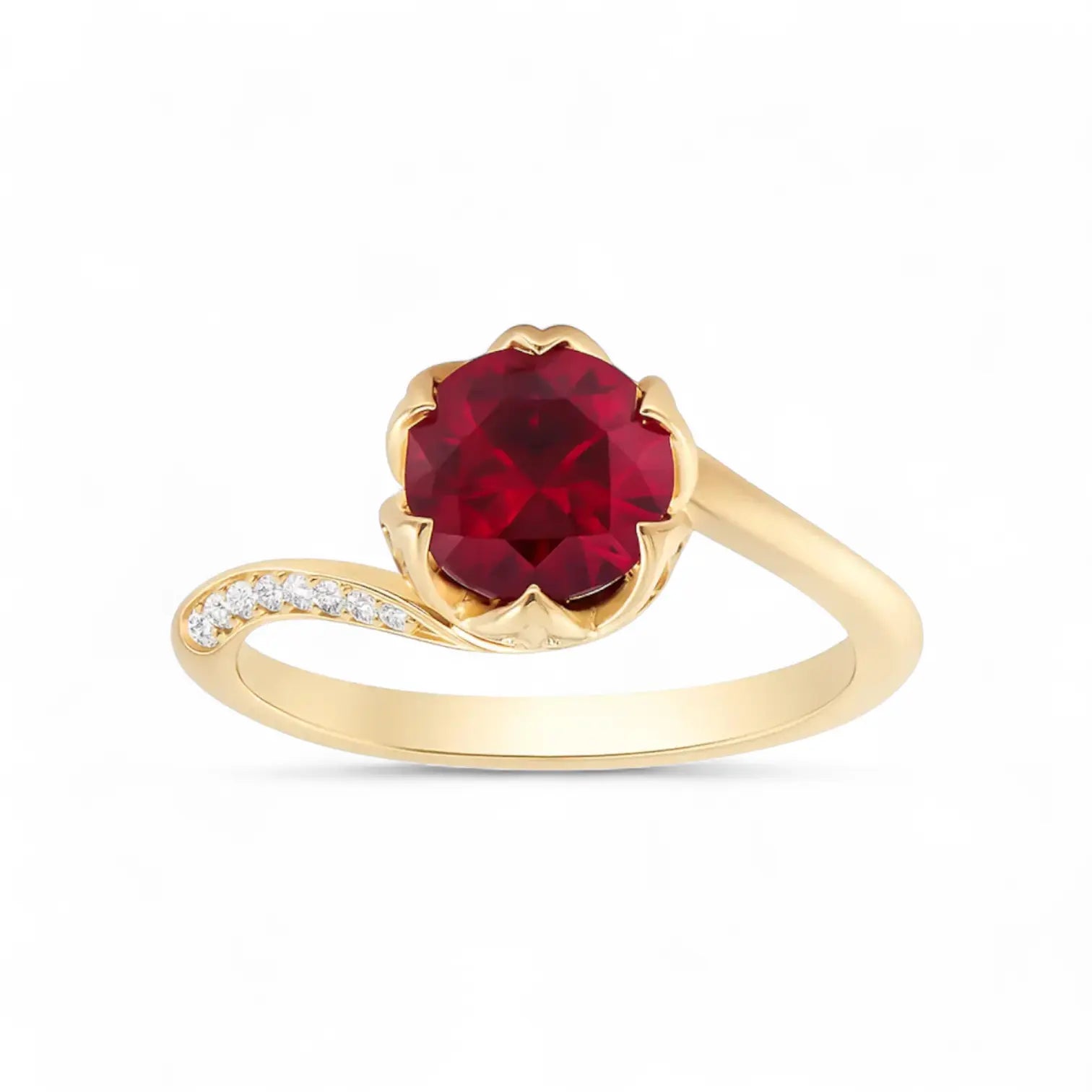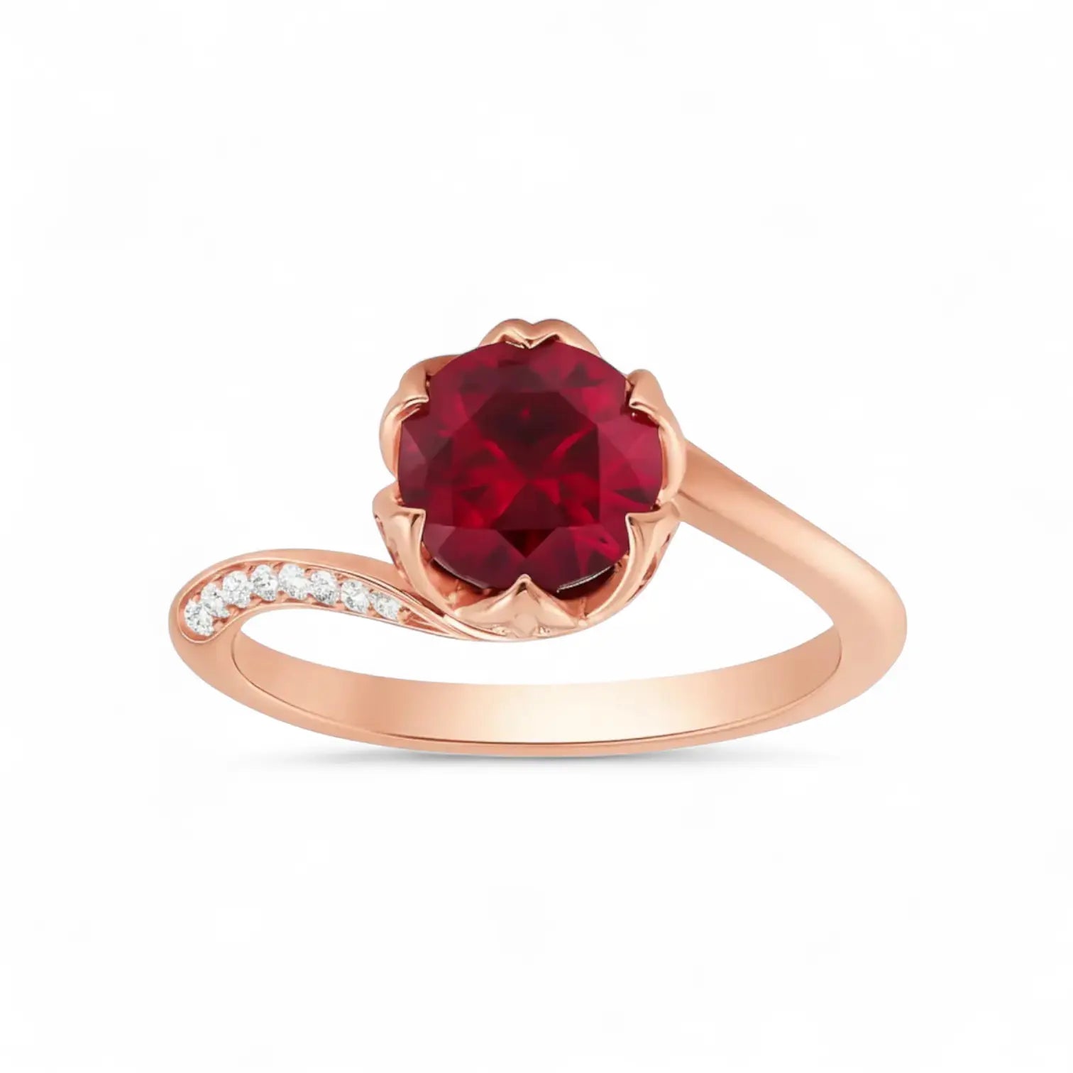 Bright red has always been a distinctive color, and garnet's red is particularly striking. The Round Garnet Petal Prong Ring from the Bloom series is fiery and passionate. The tiny zircon speckles on the side add a touch of brilliance to the deep red, making its character more three-dimensional. This ring understands those who were born in January especially well. While they may appear calm, they possess a passionate heart, and it perfectly matches their personality.