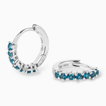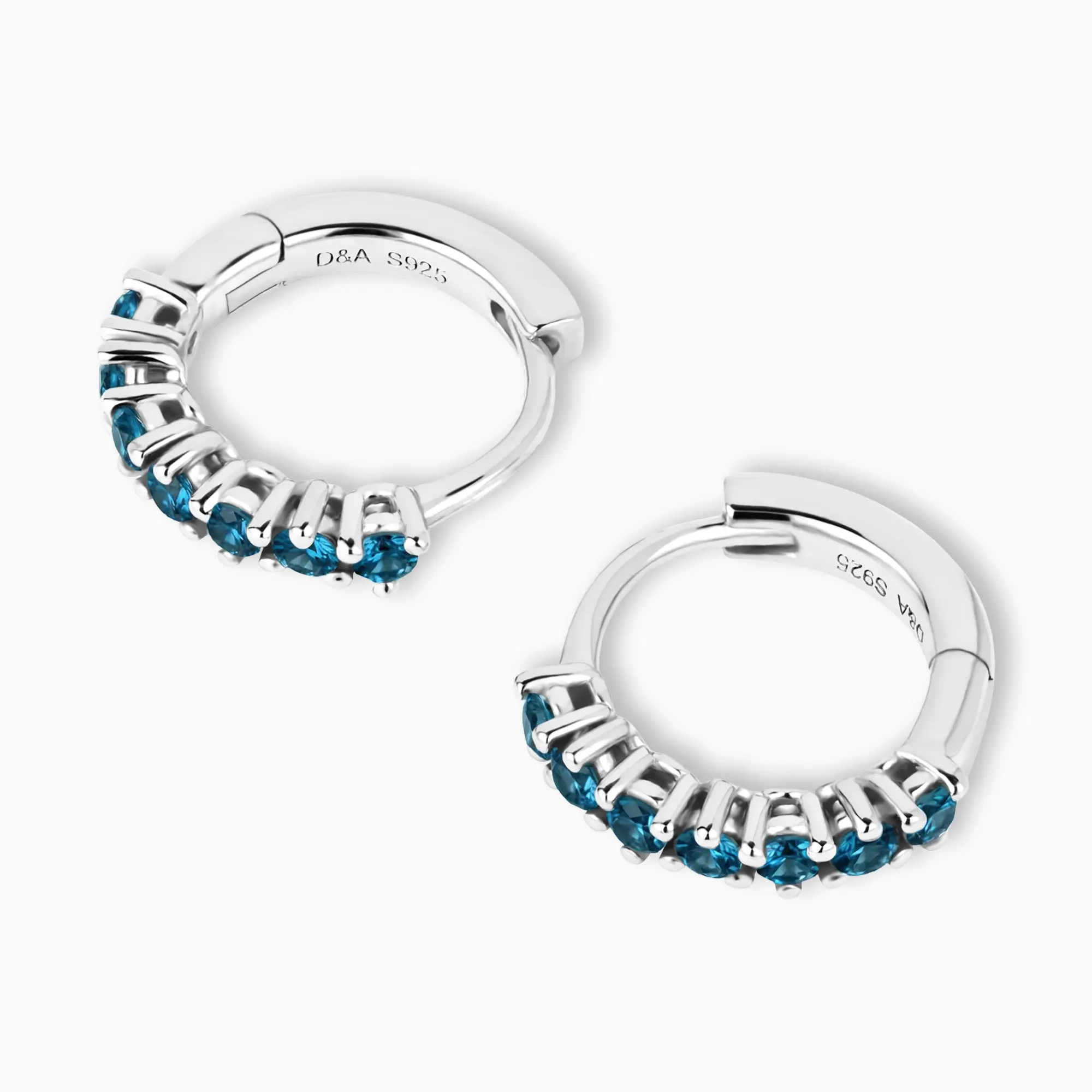 Like the clear surface of a winter lake, these Round London Blue Topaz Huggie Hoop Earrings bring pure clarity and calmness. The semi-circle of tiny round gemstones emits a serene yet bright blue luster. Perfect for everyday wear, they are lightweight and natural. Let your thoughts become clearer and your mind more lucid.