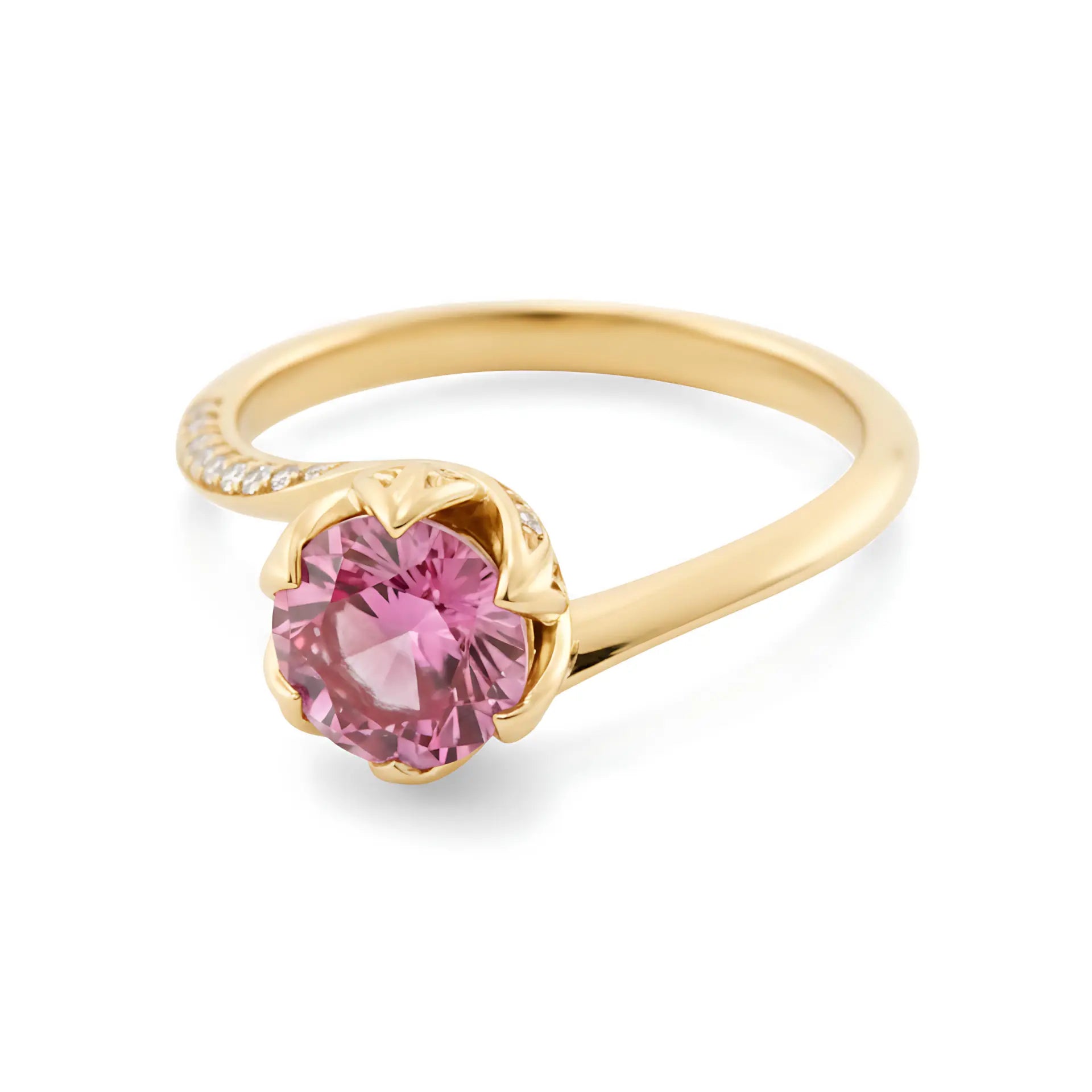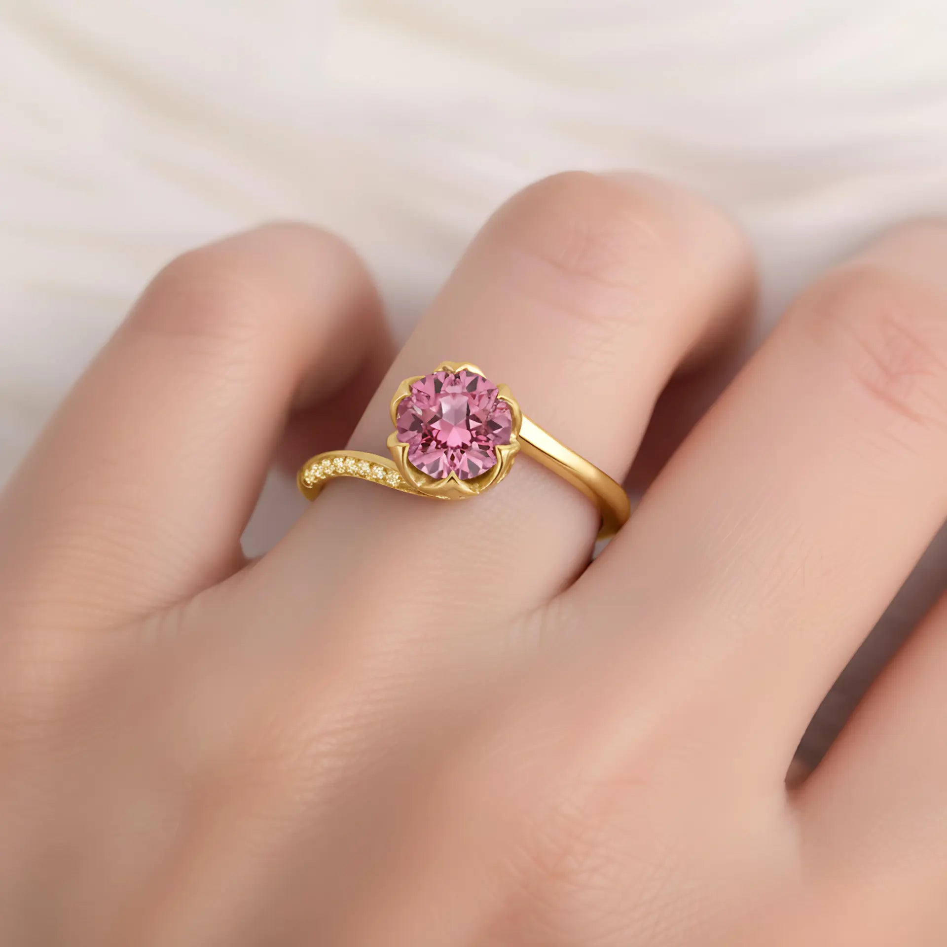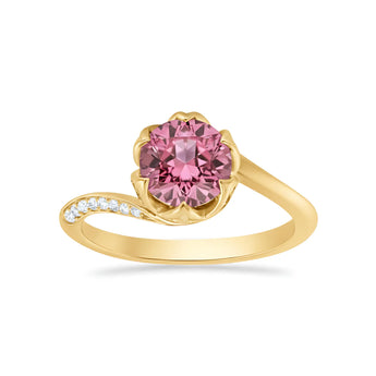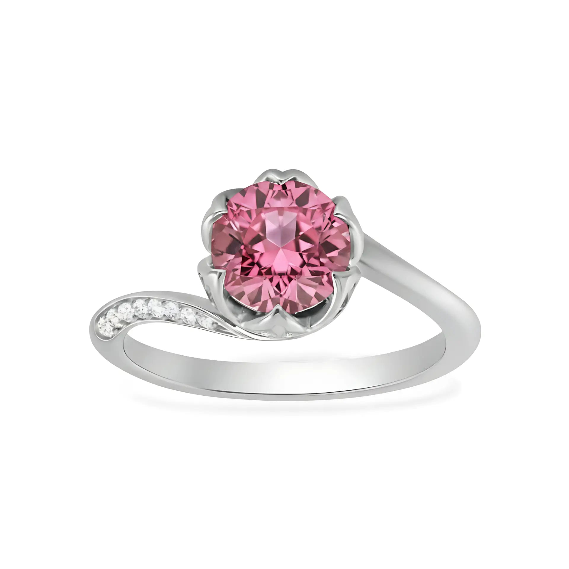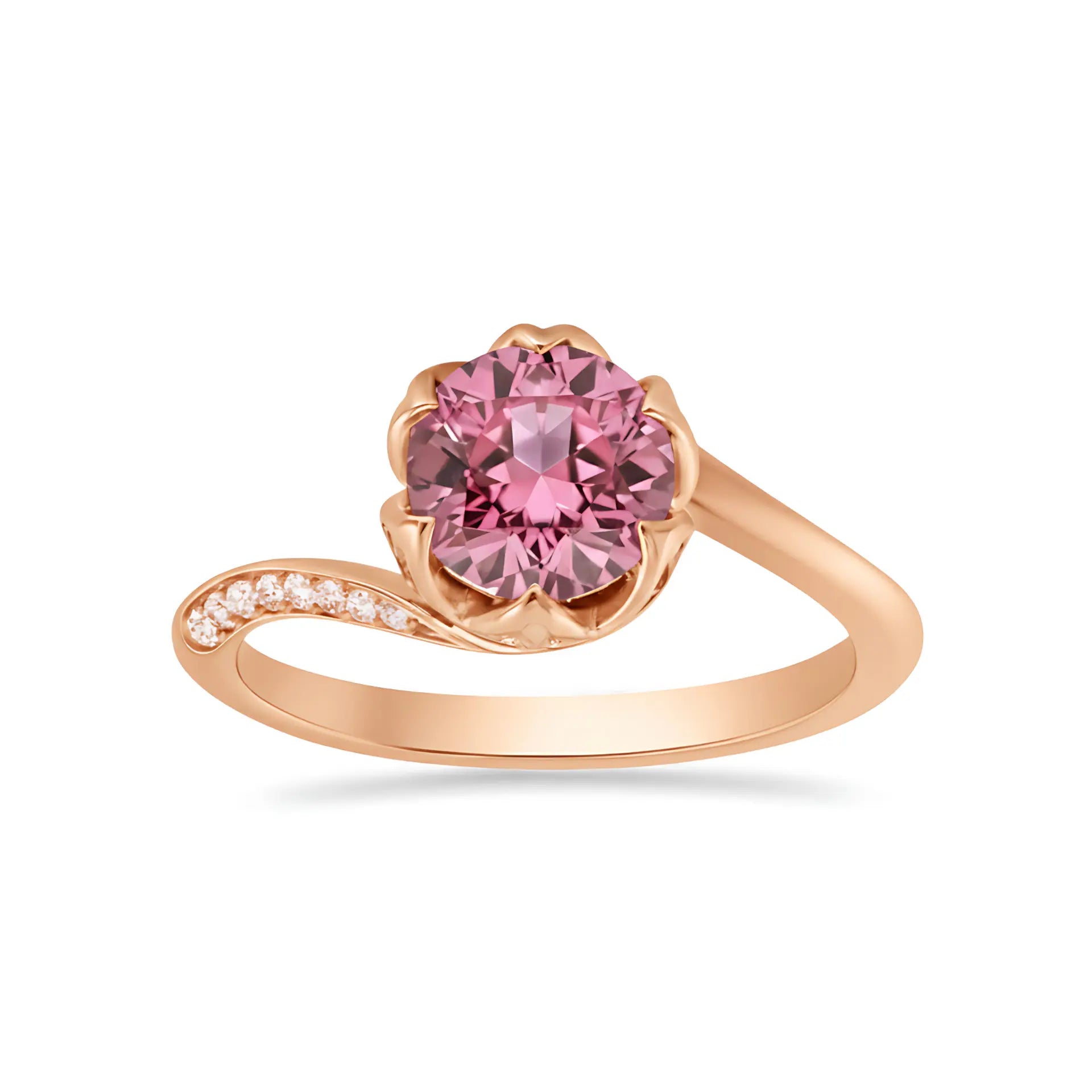 Round Pink Tourmaline Petal Prong Ring - Bloom