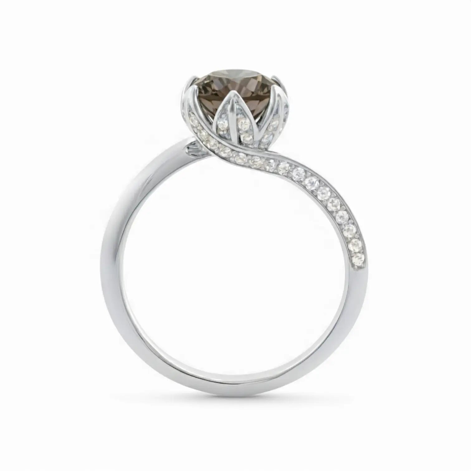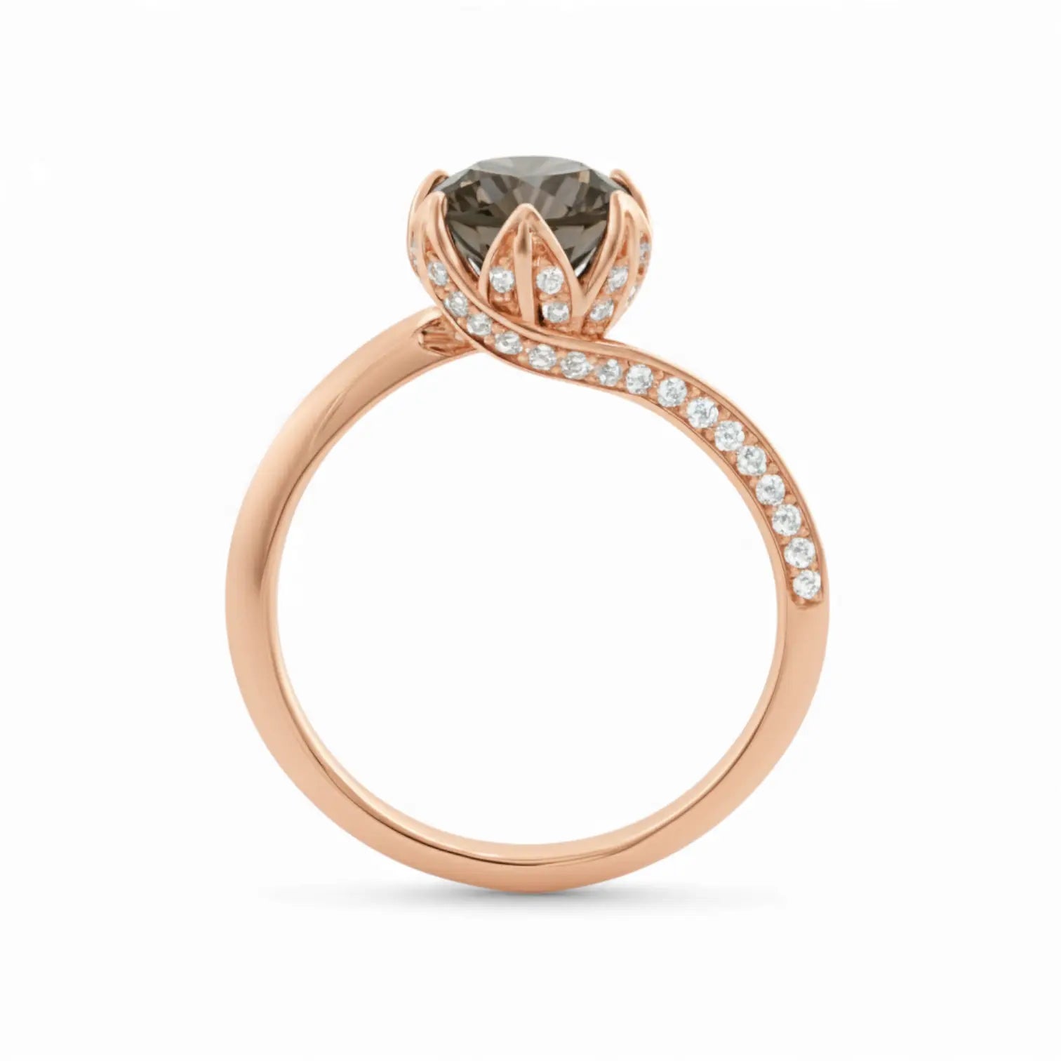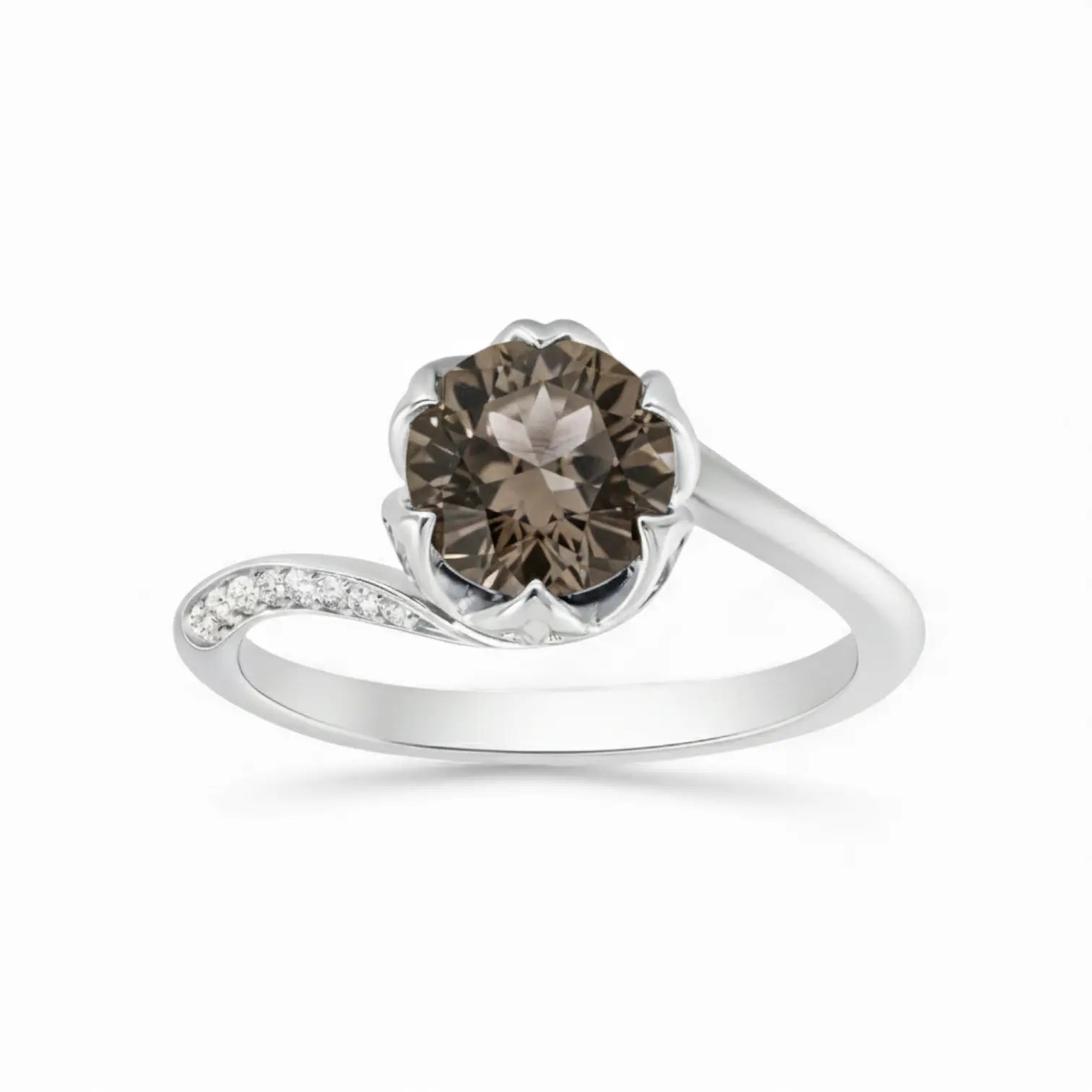 Round Smoky Quartz Petal Prong Ring - Bloom