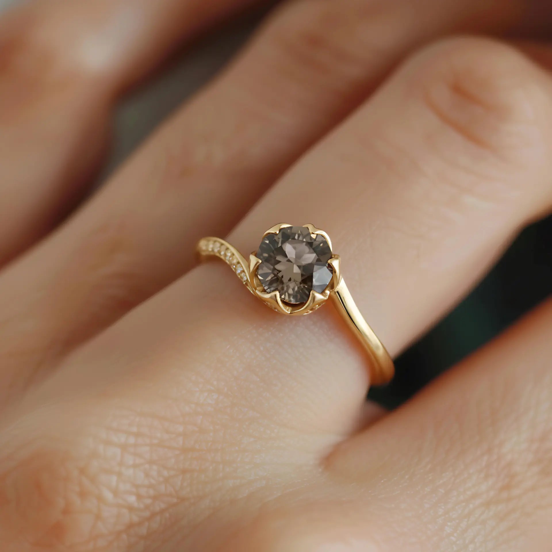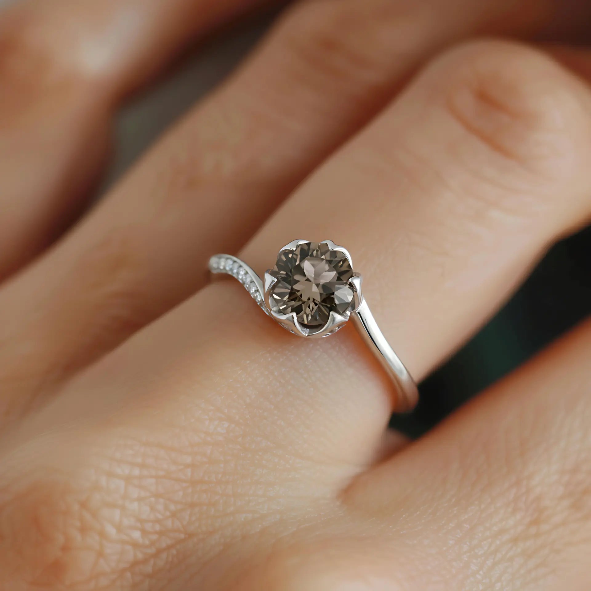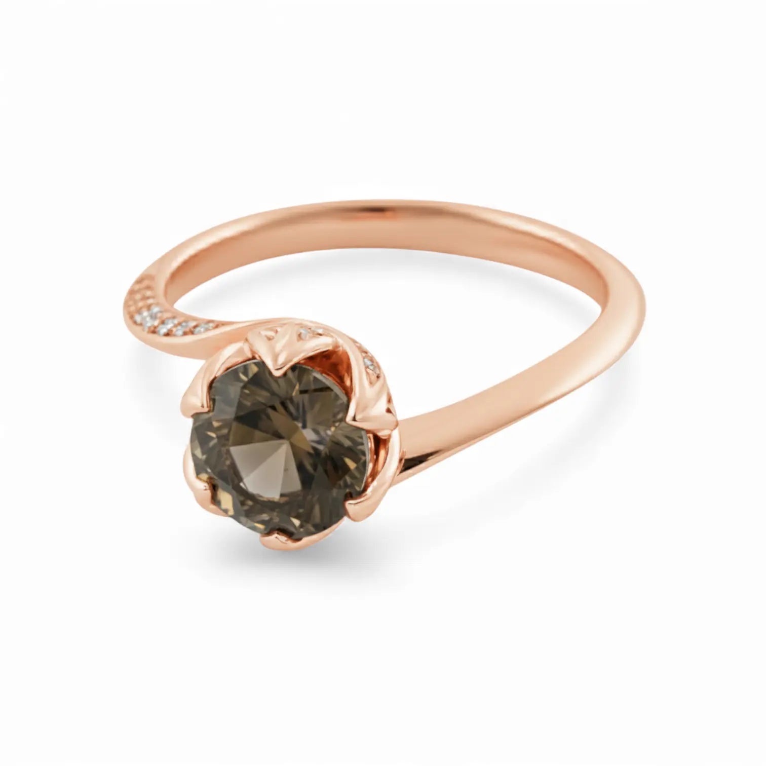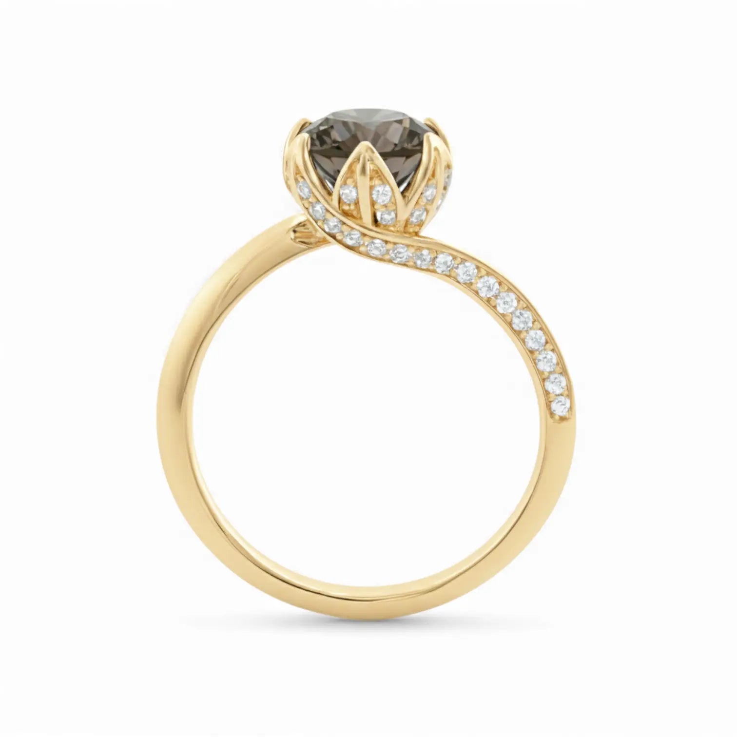 Round Smoky Quartz Petal Prong Ring - Bloom