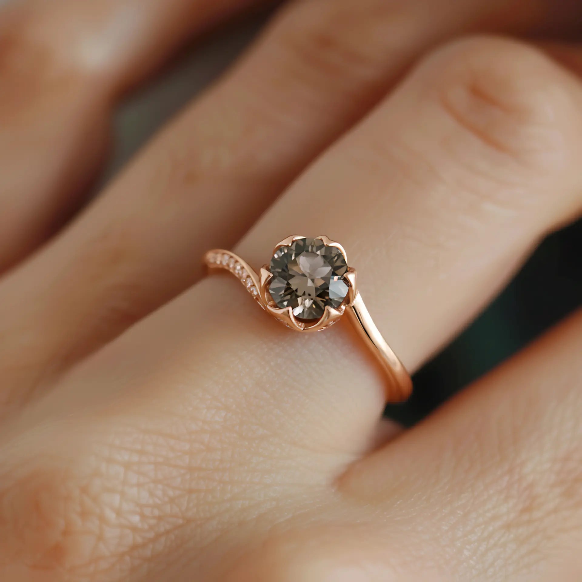 From our newly launched Bloom collection, this Round Smoky Quartz Prong Ring feels steady and precise within its floral prong structure. The color stays understated, yet it carries a clear sense of strength. It is a direct expression of grounding. It offers those who love a steady and stable life a way to hold their presence while remaining elegant.