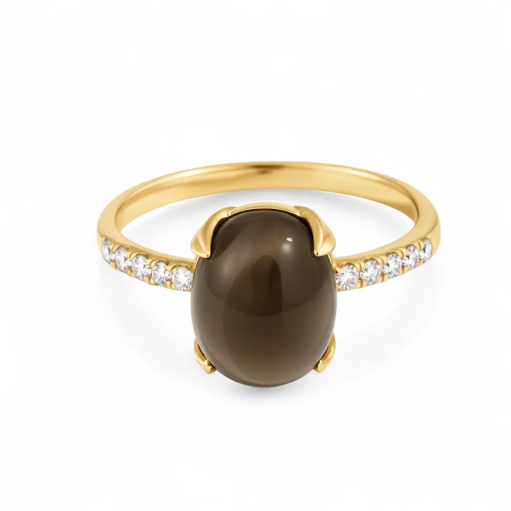 Smoky Quartz Cabochon Ring - Minimal Spiritual