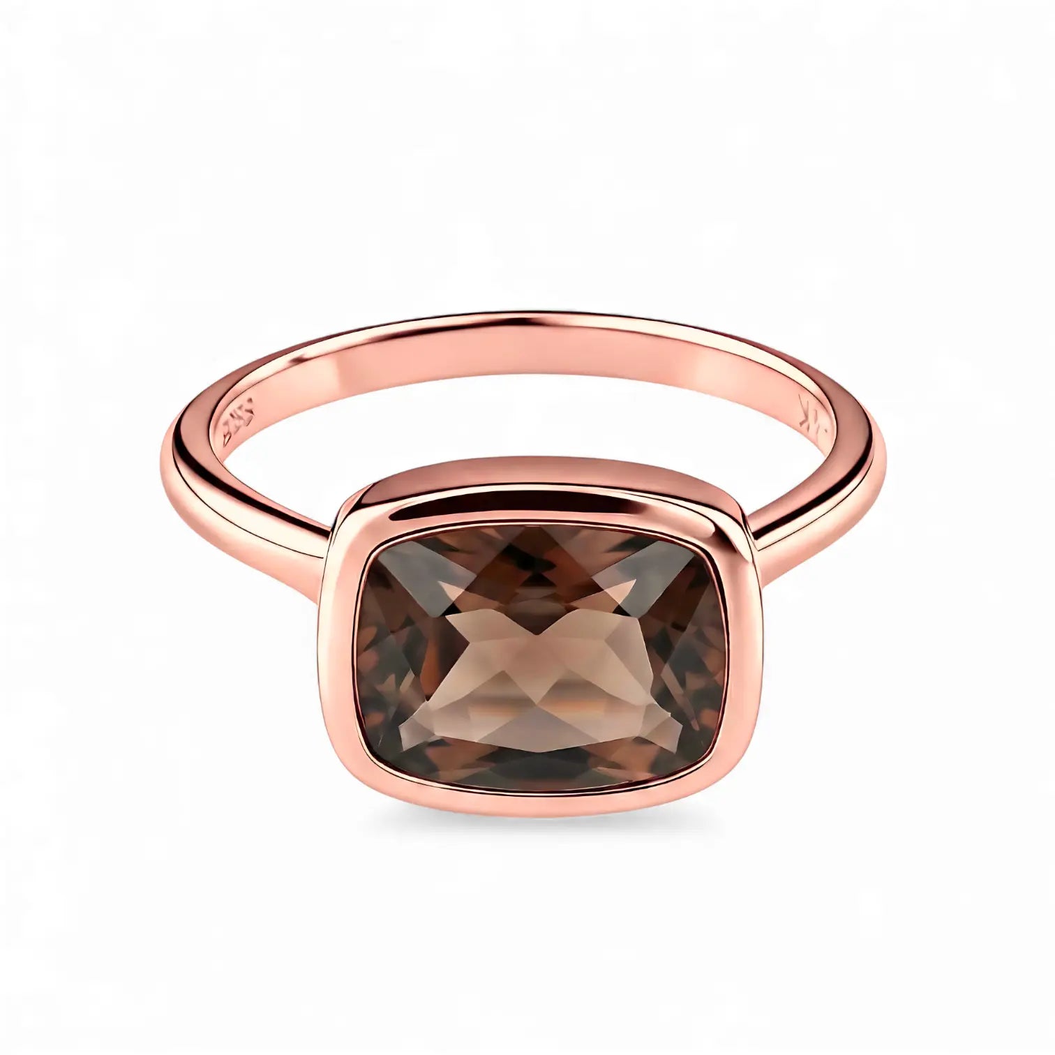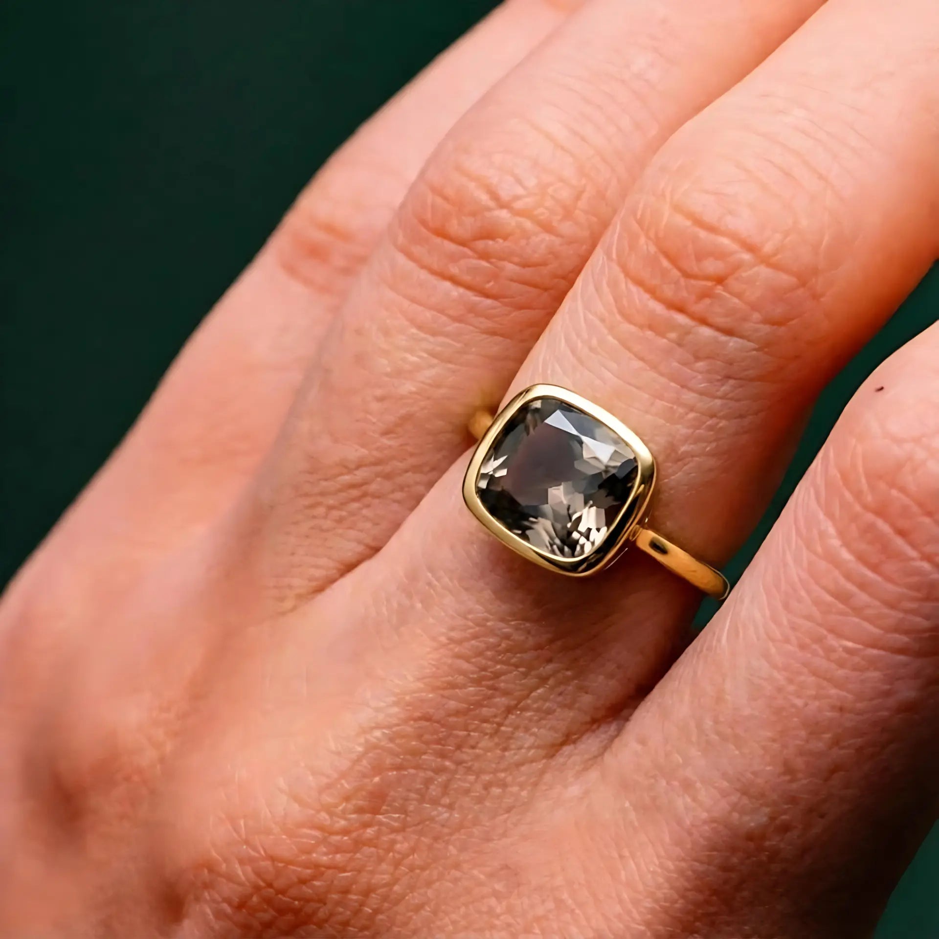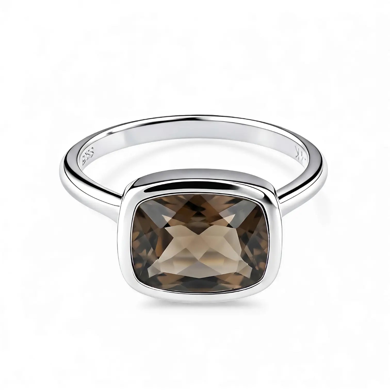 Feel the stability, within reach. The deep smoky quartz exudes a calming power, gently encased in a bezel setting, where light slowly filters through. This ring brings a grounded weight to every step. The subtle interplay of light and shadow across the cushion's facets. It makes the grounding ring tangible. It's your source of inner peace amidst chaos.